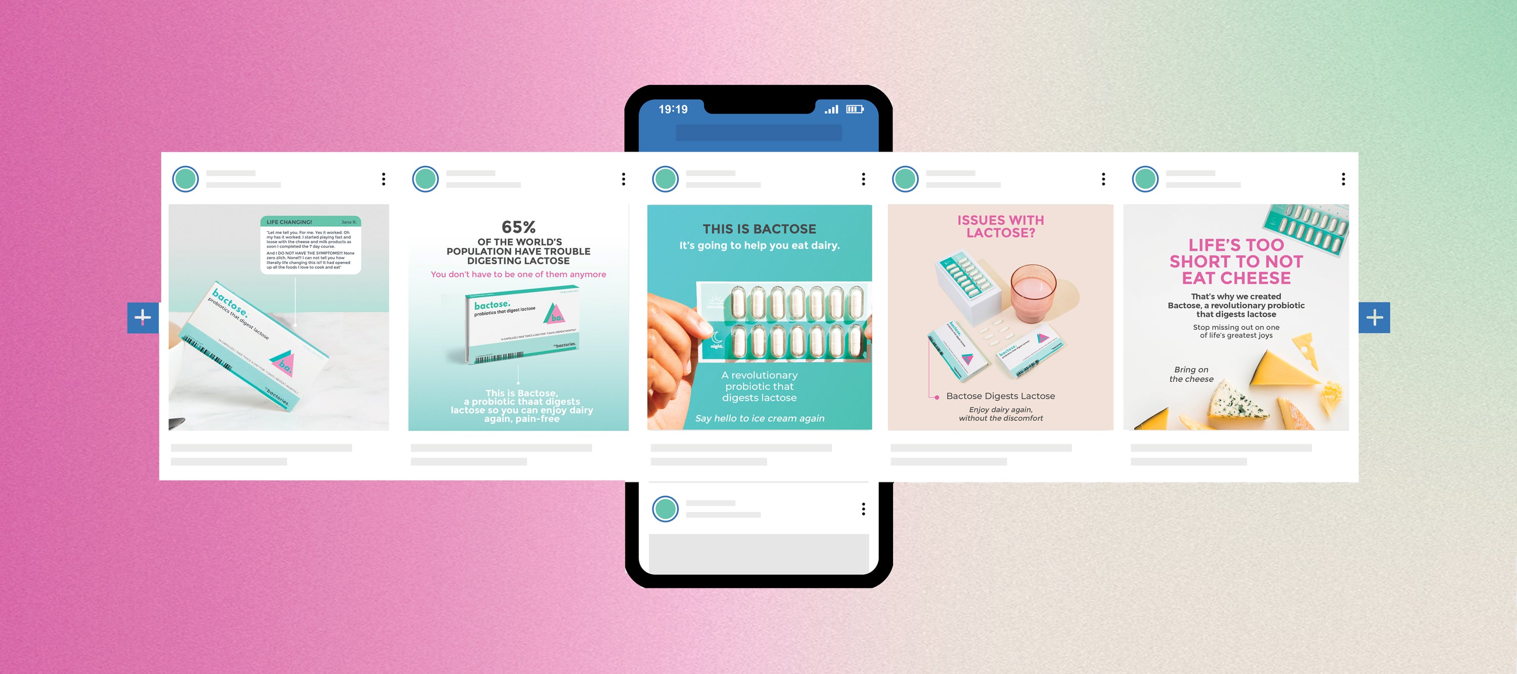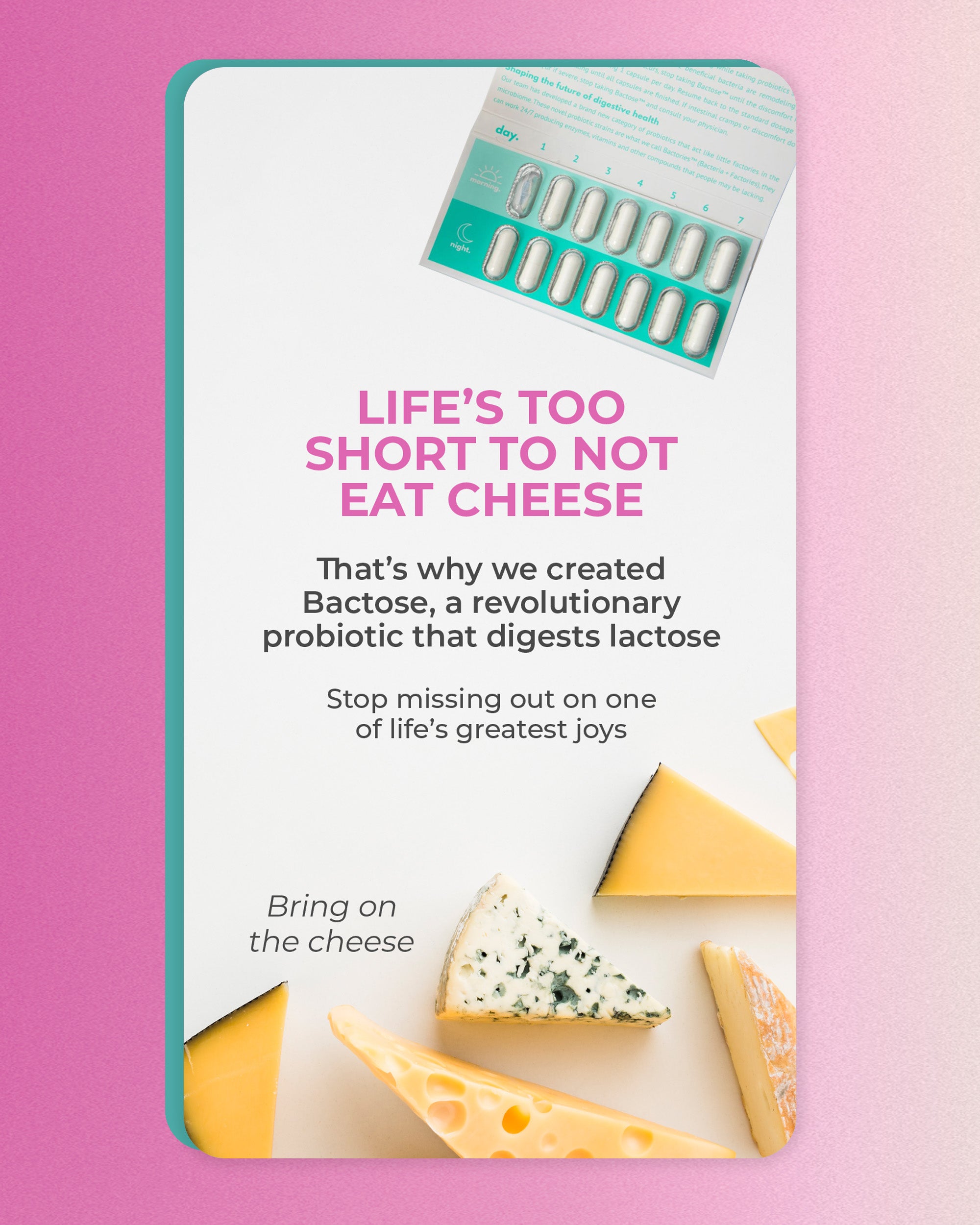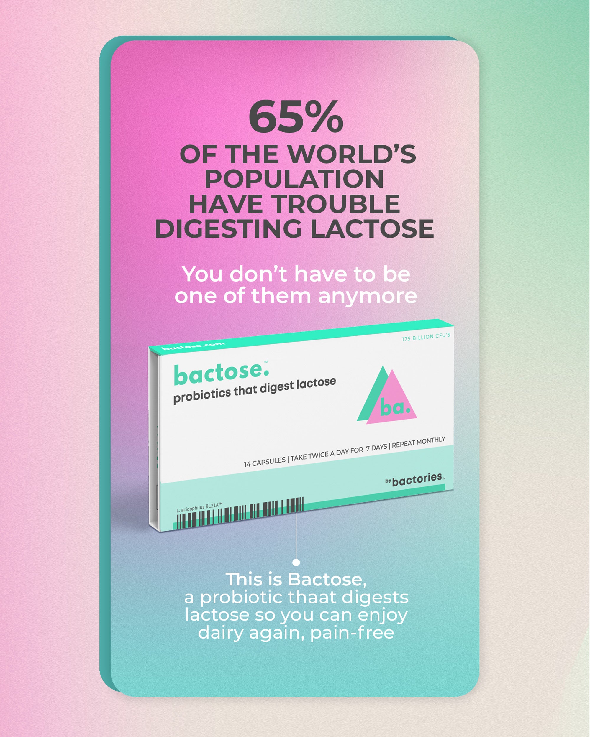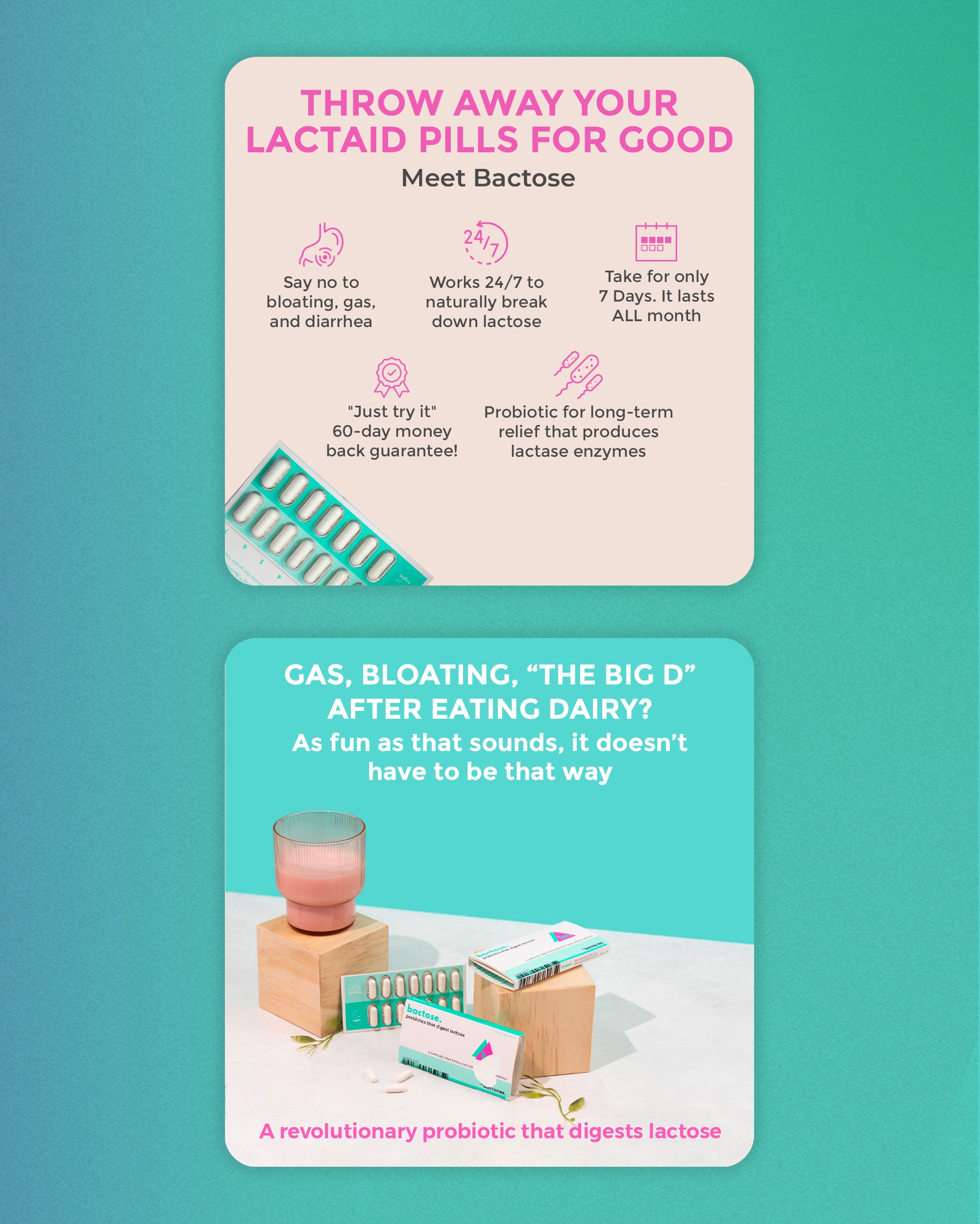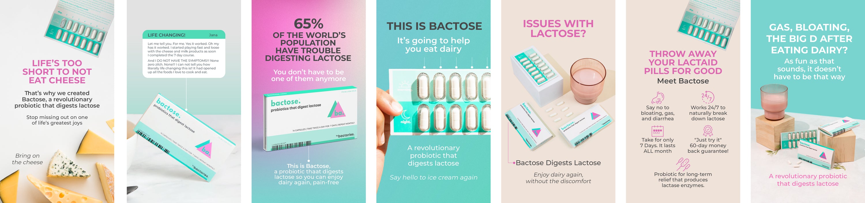 Bactose is an innovative product for those that have sensitivity to lactose. They were looking to create ads that are eye catching and are product focused for conversions.